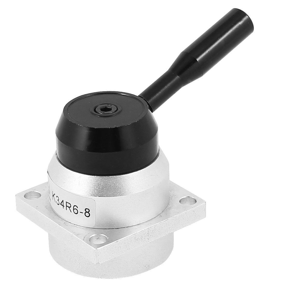 Details1/4PT 3 Positions 4 Ports Air Hand Pneumatic Switching Valve K34R6-8  Product Name Hand Lever Valve Model K34R6-8 Fluid Air Joint Pipe Size 1/4PT Joint Pipe Dia 12mm Action Direct Acting Type Actuation Type 3 Position 4 Way 4 Port Max. Pressure 1MPa Valve Size 55 x 55 x 61mm/ 2.2" x 2.2" x 2.4" (L*W*H) Lever Size 56 x 13mm/ 2.2" x 0.5" (L*D) Fixing Hole Diameter 6mm/ 0.24" Fixing Hole Center Distance 45 x 45mm/1.8" x 1.8"(L*W) Material Plastic, Metal Net Weight 290g Package Content 1 x Hand Lever Valve
