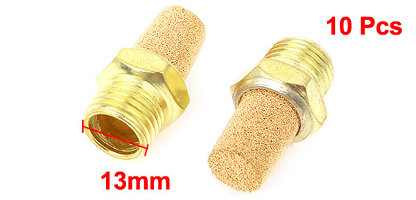 13mm/ 1/4 PT Overall Size 29 x 15mm/1.1" x 0.6"(L*Max.D) Material Brass Color Gold Tone Net Weight 105g Package Content 10 x Pneumatic Mufflers - Reviews