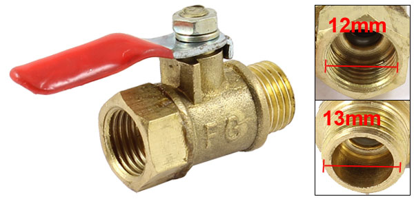 Product Name Lever Handle Ball Valve Type Female Thread to Male Thread Handle Size 28 x 11mm/1.1'' x 0.43'' (L*W) Body Size 33 x 18mm/1.3'' x 0.71'' (L*W) Female Thread Diameter 12mm/1/4PT Male Thread Diameter 13mm/1/4PT Material Brass, Plastic Color Brass Tone, Red Net Weight 35g Package Content 1 x Lever Handle Ball Valve - Reviews