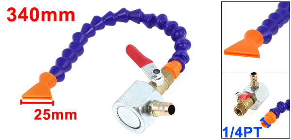 Product Name Magnetic Base Coolant Pipe Material Plastic,Metal Thread Diameter 12.5mm/0.5"/1/4PT Connector Diamter 9mm/ 0.35" (Approx.) Flat Nozzle Width 25mm/ 1" (Approx.) Total Length (Approx.) 340mm/ 13.4"