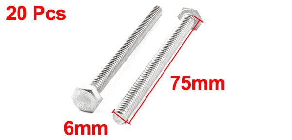 Product Name Screw Bolt Material 304 Grade Stainless Steel Thread Dia 1/4" Thread Length 3" Size 1/4"-20 x 3" Head Type Hex Cap Color Silver Tone Weight 340g Package Content 20 Pcs(+/- 2%) x Screw Bolt - Reviews