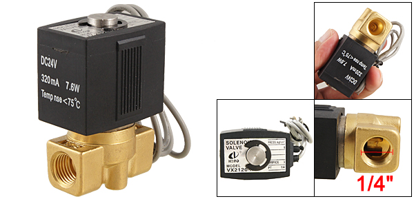 Product Name Solenoid Valve Model VX2120-08 Switch Type NC Type Two Way,Two Position Use Fluid Air, Water, Oil, Gas Material Metal Voltage DC 24V Working Temperature -5 ~ 75 Centigrade Degree Working Pressure 0~1.0 kgf/m2 Current 320mA Power 7.6W Joint Pipe Bore PT1/4 Thread Port Diameter 1.3cm Cable Length 28.5cm/11.2" Total Size (Approx.) 4 X 2.5 x 6cm / 1.6" x 1" x 2.4" (L*W* H) Color Black, Gold Tone Weight 270g Package Content 1 x Solenoid Valve - Reviews