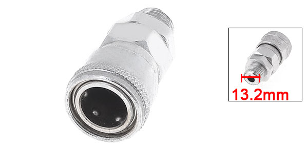 Product Name Quick Coupler Fluid Applied Air Thread Diameter 13.2mm/ 1/4"PT Overall Size 45 x 23mm/ 1.8" x 0.9" (L*D) Color Silver Tone Material Metal Weight 53g Package 1 x Quick Coupler - Reviews