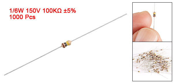 Product Name Carbon Film Resistors Rating Power 1/6W Resistance 100K Ohm Resistance Tolerance ± 5% Withstand Voltage 150V Size(Not Include Leads) 0.33 x 0.17cm / 0.130" x 0.067"(L*D) Leads Dia(Approx) 0.03cm / 0.012" Overall Length(Approx) 4.55cm / 1.8" Color See the Picture Weight 57g Package Content 1000(±2%) Pcs of Carbon Film Resistors - Reviews