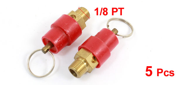 1/8 PT Male Thread Red Gold Tone Air Compressor Relief Valves 5 PCS