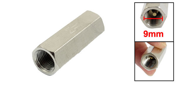 Product Name One Way Check Valve Color Silver Tone Thread Size 1/8" PT Thread Diameter 9mm Size 37 x 14.5mm/ 1.46" x 0.57" (L*D) Material Metal Weight 26g Package 1 x One Way Check Valve - Reviews