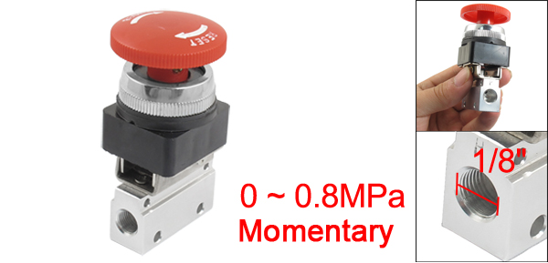 1/8" PT Thread Three Way Two Position Red Head Momentary Pneumatic Valve MOV-03