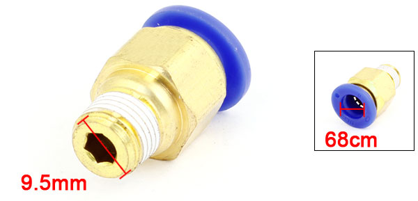 Item Name Quick Fitting Total Size 25 x 16mm/ 1" x 0.63" (L*W) Thread Diameter 9.5mm Thread Size 1/8" PT Inner Diameter (Blue End) 8mm/0.31" Main Material Chrome Plated Brass, Plastic Color Gold Tone, Blue Weight 12g Package Content 1 x Quick Fitting - Reviews