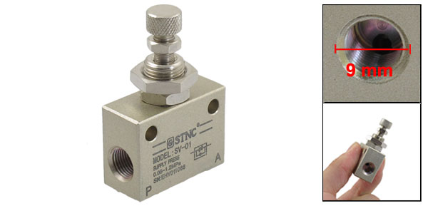 Product Name Gas Valve Model SV-01 Working Medium Air Flow Direction One Way Female Thread Diameter 9mm Female Thread Size 1/8"PT Fixing Hole Diameter 4.5mm/ 0.18" Fixing Hole Distance 25mm/ 0.98"(Center to Center) Mount Thread Diameter 12mm/ 0.47" Suitable Board(Max) 4mm/ 0.157"(Adjustable) Working Pressure Range 0.05~1.2Mpa Operating Temperature Range -5~99C Body Size 3.5 x 1.9 x 2.6cm/ 1.38"x 0.75"x 1.02"(L*W*H) Total Size(Approx) 3.5 x 1.9 x 5.3cm/ 1.97"x 0.98"x 2.09"(L*W*H) External Material Metal Color As Picture Shown Net Weight 60g Package Content 1 x Gas Valve - Reviews