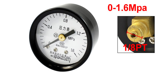 1/8PT Threaded 0-1.6Mpa Arabic Number Dial Pneumatic Air Pressure Gauge