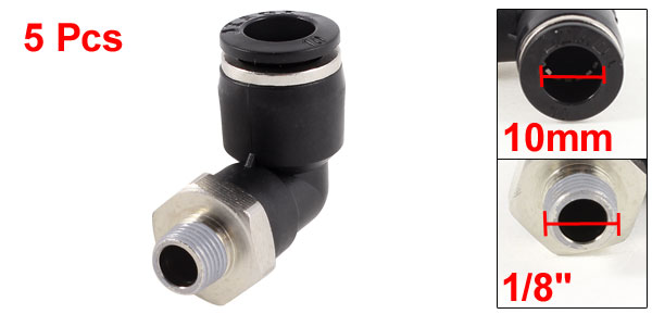 1/8" PT Thread to 10mm Quick Connector Elbow One Touch Connector 5 Pcs