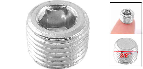 Product Name Hex Head Pipe Plug Color Silver Tone Material Metal Thread Diameter 9.7mm Thread Size 1/8" NPT Hex Side to Side Diatance 5mm/0.197" High 7mm/ 0.275" Net Weight 3g Package Content 1 x Hex Head Pipe Plug - Reviews