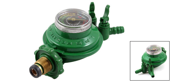1 Inlet 2 Outlet Liquefied LGP Gas Gauge Pressure Regulator Green