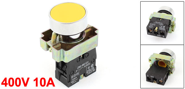 1 NO N/O Yellow Sign Momentary Push Button Switch 400V 10A