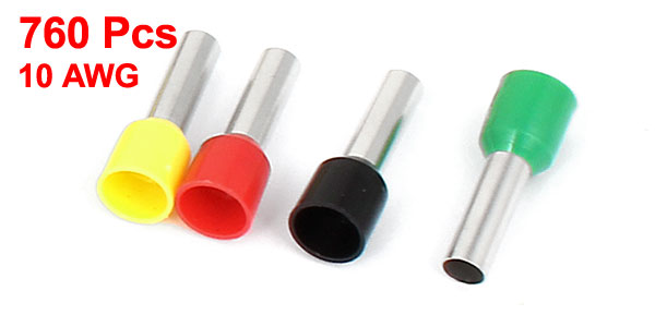 Product Name Insulate Ferrule Model E6012 Design Tube Type Material Plastic, Metal Color Silver Tone, Black, Red, Yellow, Blue Fit Cable Size 6.0 mm² 10 AWG Metal Tube Size 3.5 x 3.8 x 12 mm / 0.14" x 0.15" x 0.5"(Inner Dia*OD*L) Plastic Tube Inner Dia 6 mm / 0.25" Total Length 20 mm / 0.8" Net Weight 216g Package Content 760 Pcs (±2%) x Insulate Ferrules - Reviews