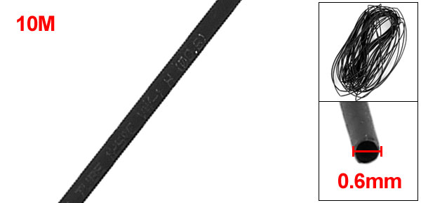 10 Meter 0.6mm Dia Ratio 2:1 Heat Shrinkable Shrinking Tube Black