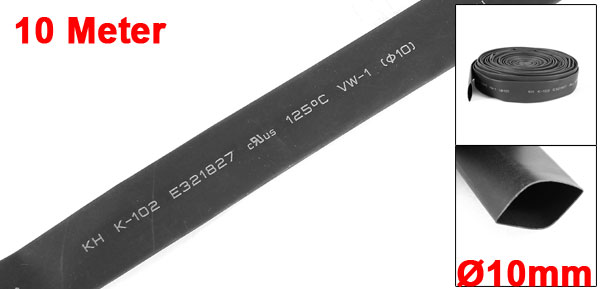 10 Meter 10mm Dia Ratio 2:1 Heat Shrinkable Shrinking Tube Black