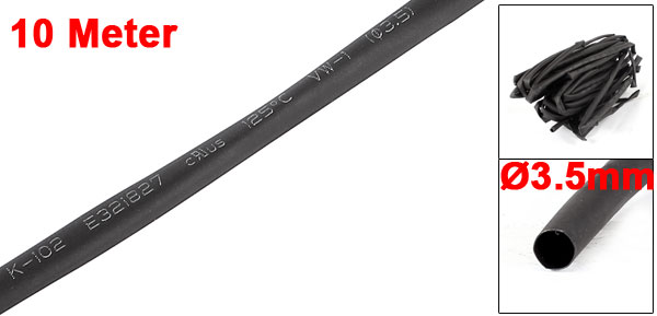 Details10 Meter 3.5mm Dia Ratio 2:1 Heat Shrinkable Shrinking Tube Black  Product Name Heat Shrinkable Tube Flammability VW-1 Diameter 3.5mm / 0.14" (Before Shrinking) 1.75mm / 0.07" (After Shrinking) Shrink Ratio 2:1 Length (Approx.) 10M/33Ft Color Black Material Polyolefin Weight 39g Package Content 1 x Heat Shrinkable Tube