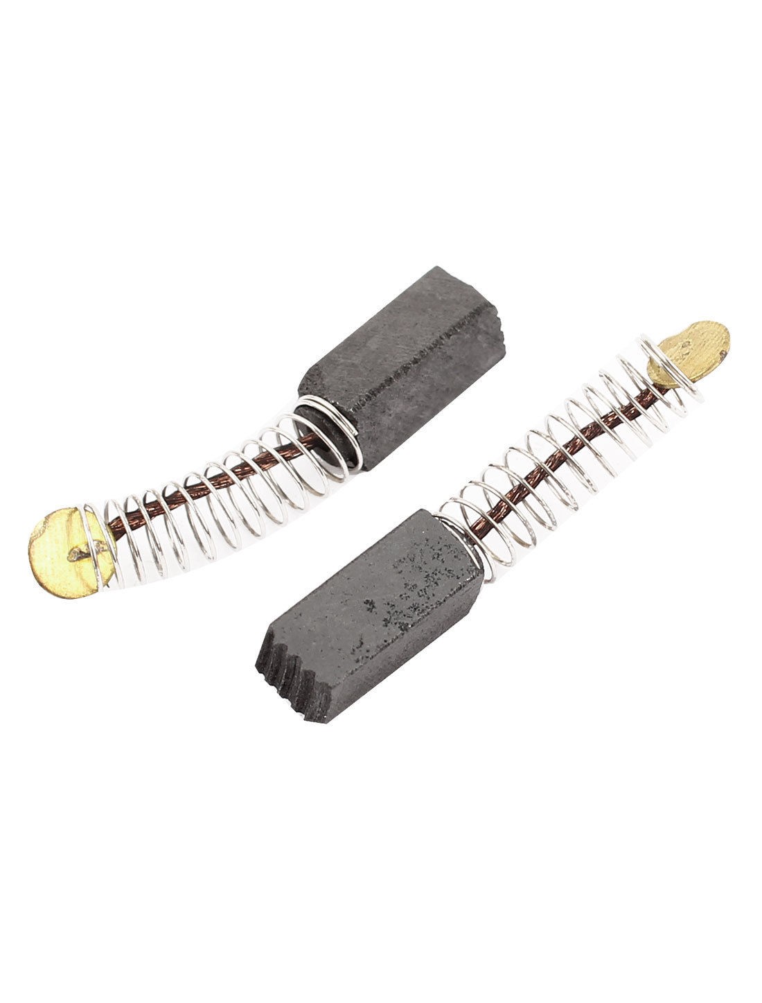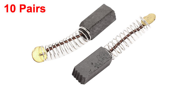 Product Name Motor Carbon Brush Material Carbon , Metal Color Black, Gold Tone Carbon Brush Size (Approx.) 11 x 5 x 5mm/0.43" x 0.2" x 0.2" (L*W*T) Total Length(Approx) 30mm/ 1.2" (When Spring Stretching) Weight 59g Package Content 10 Pairs x Motor Carbon Brush - Reviews