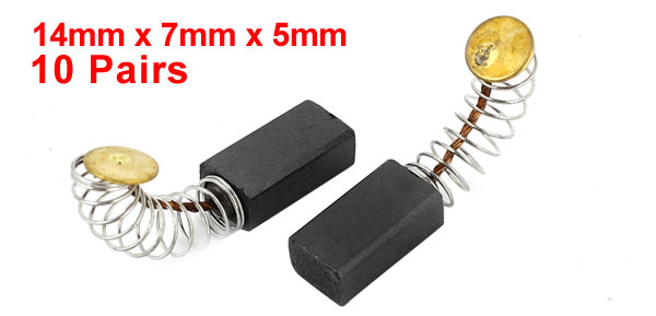 Product Name Motor Carbon Brush Fitness Generic Electric Motor Carbon Brush Size (Approx) 14 x 7x 5mm(L * W * T) Total Length(Approx) 3.3cm/1.3" Net Weight 58g Package Content 10 Pairs x Motor Carbon Brush - Reviews