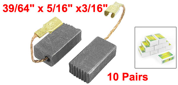 Product Name Motor Carbon Brush Material Carbon, Metal Color Black, Gold Tone Carbon Brush Size (Approx.) 15.4 x 7.8 x 4.7mm / 39/64" x 5/16" x3/16" (L*W*T) Total Length(Approx) 45mm / 1.8" Net Weight 72g Package Content 10 Pairsx Motor Carbon Brushes - Reviews