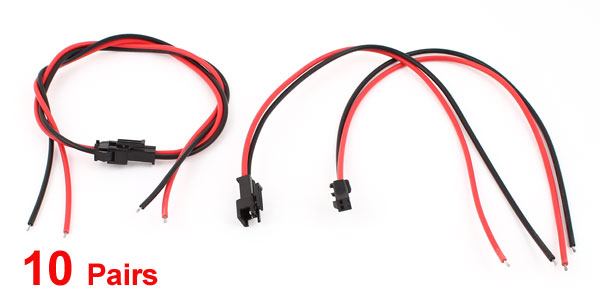 10 Pairs Black Red 25cm Long 2-Pin EL Wires Pigtail Connector