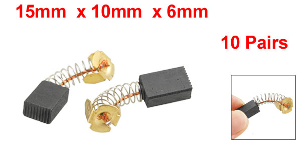 Product Name Carbon Brush Carbon Brush Size (Approx) 15 x 10 x 6mm / 19/32" x 3/8" x 1/4"(L*W*H) Total Length(flat) 38mm/1.5" Material Carbon, Metal Net Weight 50g Package Content 10 Pairs x Carbon Brushes - Reviews