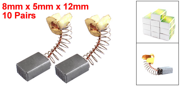Details10 Pairs Generic Electric Motor Replacing Carbon Brushes 8mm x 5mm x 12mm  Product Name Motor Carbon Brush Fitness Universal Electric Motor Carbon Brush Size (Approx) 8 x 5 x 12mm(L* W*H) Total Length(Approx) 30mm/ 1.2" Weight 77g Package Content 10pairs x Motor Carbon Brushes