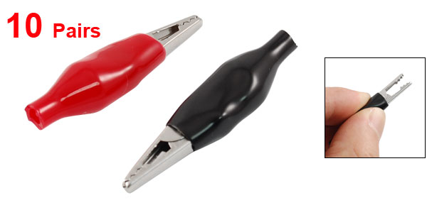 Jaw Open Width 6mm/0.24'' Cable Hole Dia. 3mm/0.12'' Color Red, Black, Silver Tone Material Metal, Soft Plastic Weight 27g Package 20 x Electrical Alligator Clips - Reviews