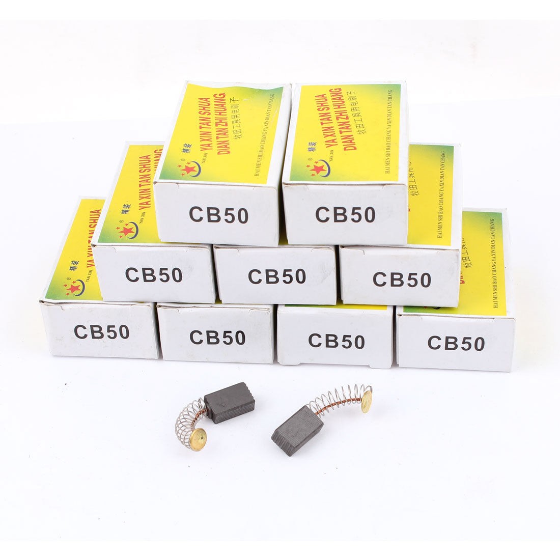 Carbon Brush Size 13 x 8 x 5mm (L*W*T) Main Color Dark Gray, Silver Tone, Gold Tone Brand Assisi Net Weight 70g Total Length 28mm / 1.1" Country of Manufacture CHINA Model Hitachi CB50 Package Content 10 Pairs x Carbon Brush Material Carbon, Metal - Reviews