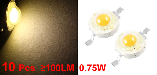 10 Pcs 0.75W High Power 100LM 2 Pin Warm White Light LED Lamp Diodes Blub Beads