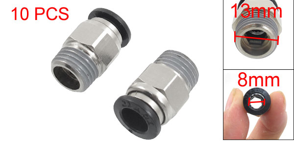 10 Pcs 1/4" PT Male Thread 8mm Push In Joint Pneumatic Connector Quick Fittings