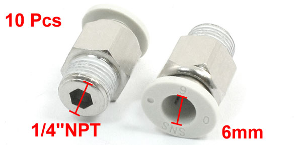 10 Pcs 1/4"NPT Male Thread 6mm Tube Push In to Straight Connect Quick Fittings