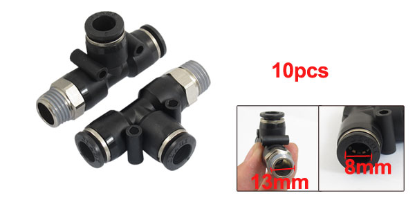 10 Pcs 1/4" PT Male Thread 8mm Pneumatic Push In Fittings T Joint Connectors