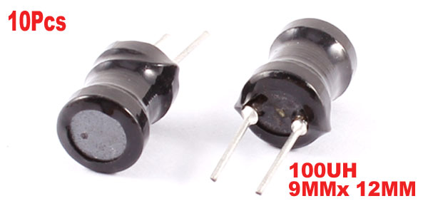 Product Name Inductor Material UL-polyolefin, Metal Inductance 100uH Body Size 9 x 12mm / 0.35" x 0.47"(D*H) Lead Distance 4mm / 0.157" Color Black, Silver Tone Weight 35g Package Content 10 x Inductors - Reviews