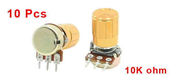 Product Name Potentiometer Resistance Value 10K ohm Adjustment Type Top Adjustment Type Single Linear (Type B) Features Knurled Shaft Shaft Diameter 6mm / 0.2" Shaft Length 8mm / 0.3" Mounting Thread Diameter 7mm / 0.3" Base Size 16 x 7.3mm / 0.6" x 0.3"(D*H) Total Height 24mm/0.9" Knob Size 14 x 17mm/0.55" x 0.7"(D*L) Material Metal, Plastic, Electronic Parts Weight 99g Package 10 x Potentiometer w Knob - Reviews