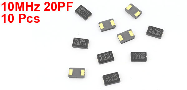 Product Name Crystal Oscillator Mount Type SMD Oscillator Type Passive Type Frequency 10MHz Frequency Tolerance +/- 20ppm Load Capacitance 20PF Level of Drive -10 to +100mW Datum Temperature -20 to + 70C Pins 2 Each Size 5 x 3.2mm/0.2" x 0.13"(L * W) Weight 1g Package Content 10Pcs x Crystal Oscillator - Reviews