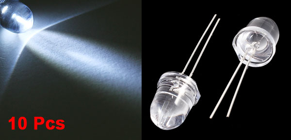 10 Pcs 10mm Dia Round Head 2Pin White Light Emitting Diode LED Bulb Lamp