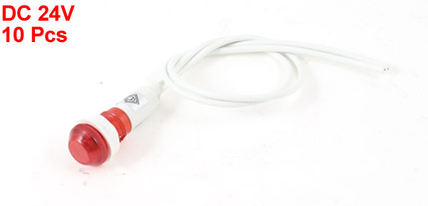 10 Pcs 10mm Hole White Cable Red Indicator Pilot Light Lamp DC 24V