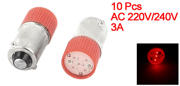10 Pcs 10mm Round Shape Head Red LED Light Signal Indicator Lamp AC 220V/240V 3A