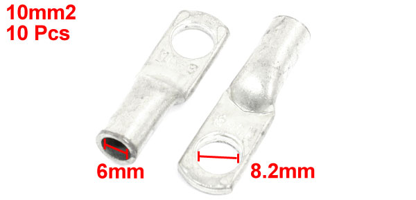 10 Pcs 10mm2 Cable Copper Lug Terminal Connector Silver Tone for 5/16" Dia Bolt