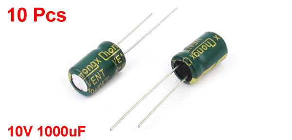 Product Name Electrolytic Capacitor Type Radial Lead Temperature -40 to +105C Voltage Rated 10V Capacitance 1000uF Tolerance +/-20% Body Size 8 x 12mm / 0.3"x 0.5" (D*L) Lead Dia 0.6mm/0.02" Dielectric Material Aluminum Weight 11g Color Green Package Content 10 Pcs x Electrolytic Capacitor - Reviews
