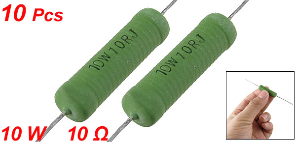 Product Name Wire Wound Resistor Type Fixed Type Rated Power 10W Resistance 10 Ω Resistance Tolerance ±5% (J) Material Metal, Ceramic Pin Diameter 0.7mm/ 0.028" Pin Length 29mm/ 1.1" (Each End) Body Size 7 x 30mm/ 0.28" x 1.2" (D*L) Total Length 90mm/ 3.5" Color Green Weight 40g Package Content 10 x Wire Wound Resistors - Reviews