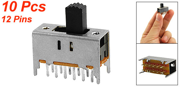 10 Pcs 12 Pin On/On 2 Position 4P2T 4PDT Mini Vertical Slide Switch 0.3A 50V DC