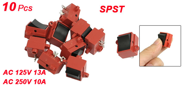 Total Size(Each) 21 x 27 x 21mm/ 0.83" x 1.06" x 0.83"(L*W*H) Mounted Size 20 x 16mm/ 0.79" x 0.63"(L*W) Hole Dia. 2.5mm/ 0.1" Main Color Red Material Plastic, Metal Weight 42g Package Content 10 x Rocker Switches - Reviews