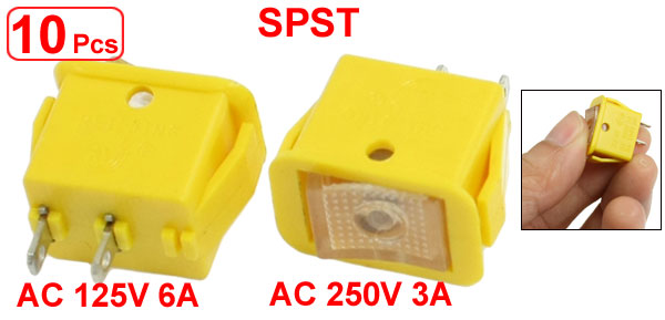Total Size(Each) 19 x 12 x 19mm/ 0.75" x 0.47" x 0.75"(L*W*H) Mounted Size 18 x 11 x 12mm/ 0.71" x 0.43" x 0.47"(L*W*H) Main Color Yellow Material Plastic, Metal Weight 22g Package Content 10 x Rocker Switches - Reviews