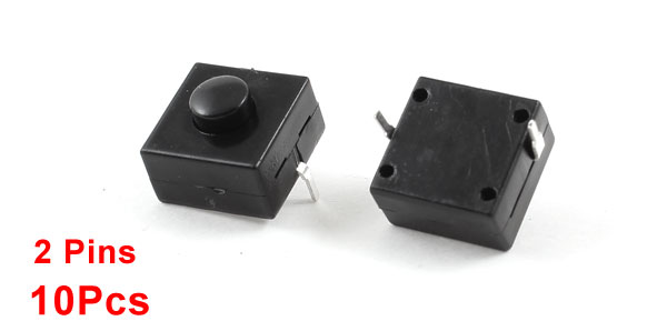 Details10 Pcs 12mmx12mmx9mm 2 Pins PCB Momentary Tactile Tact Push Button Switch  Product Name Tact Switch Action Type Momentary Total Size( Not Include Pin) 12 x 12 x 9mm/0.5" x 0.5" x 0.35"(L*W*T) Button Diameter 5mm/0.2" Material Plastic, Metal Color Black Net Weight 13g Package Content 10 x Tact Switches
