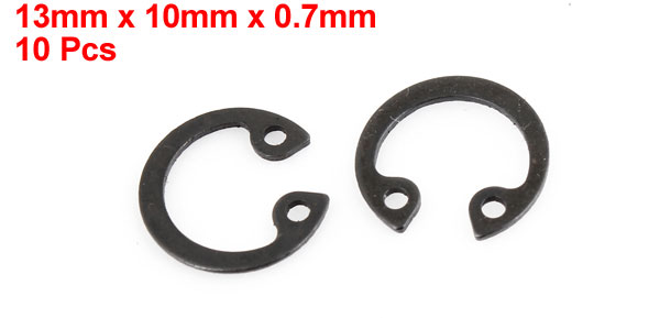 Product Name Retaining Ring Inner Dia 10mm/ 0.39" Outer Dia 13mm/ 0.5" Hole Dia 1.1mm/ 0.04" Thickness 0.7mm/ 0.028" Material Metal Color Black Weight 4g Package 10 Pcs x Retaining Ring - Reviews