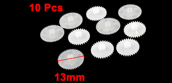 Product Name Plastic Gear Total Size 13 x 3mm/ 0.51" x 0.12"(D*T) Fit Rod Dia 2.5mm/0.1" Teeth Quanity 30 Material Plastic Color White, Clear Net Weight 4g Package Content 10 x Plastic Gear - Reviews
