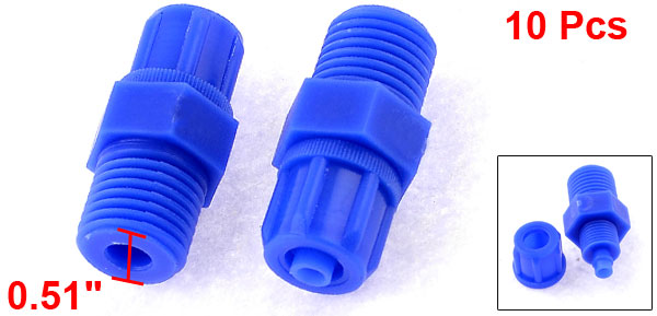 Product Name Quick Coupler Material Plastic Thread Diameter 13mm/0.51'' Fit for Pipe Size 4 x 6mm/0.16'' x 0.24'' (ID * OD) Total Size (Each ) 32 x 31 x 16mm/1.3'' x 1.2'' x 0.6'' (L*W*T) Color Blue Weight 80g Package Content 10 x Quick Coupler - Reviews